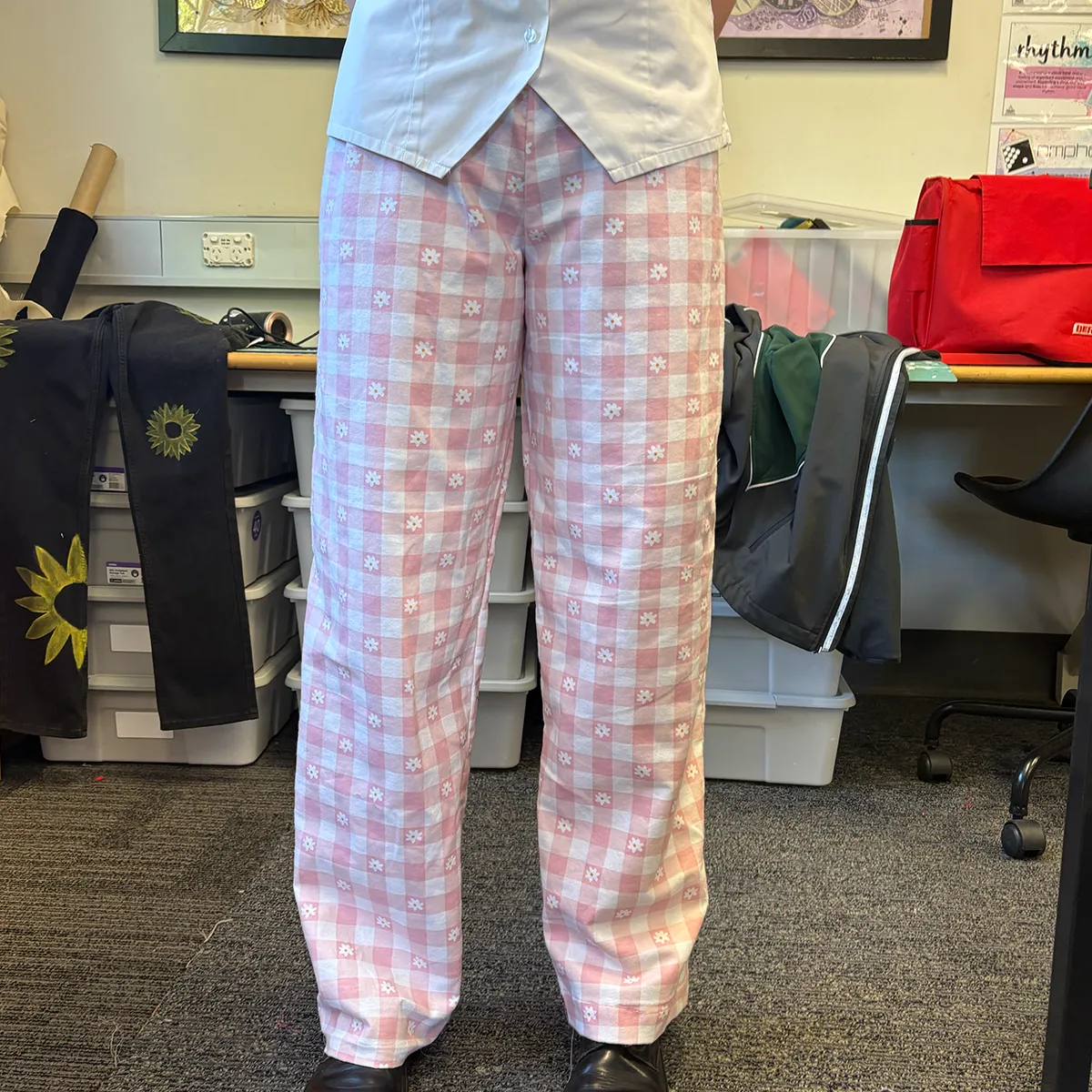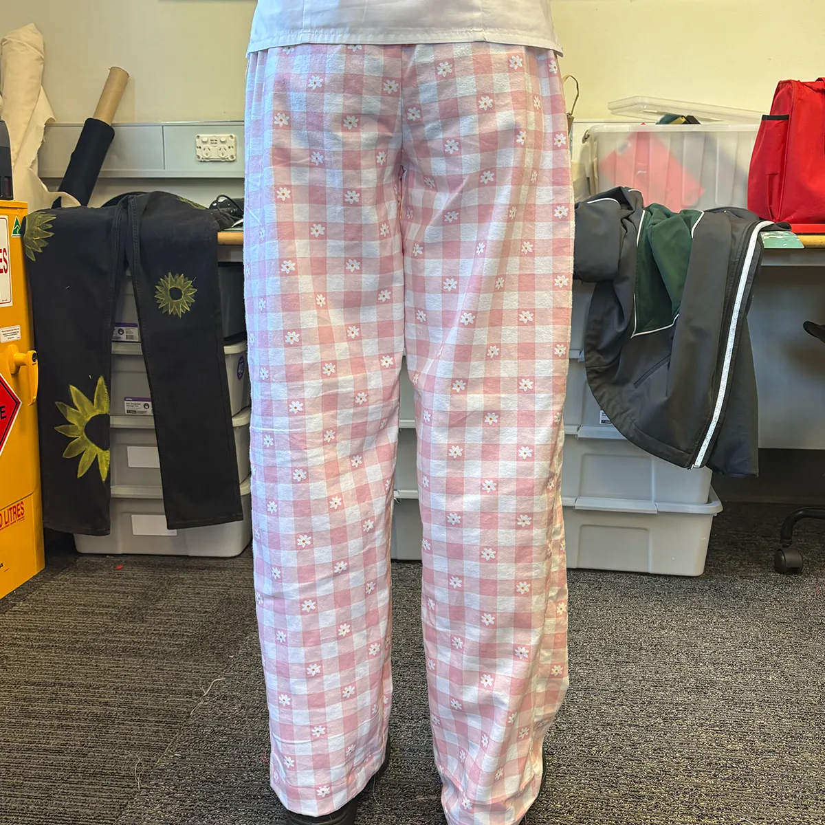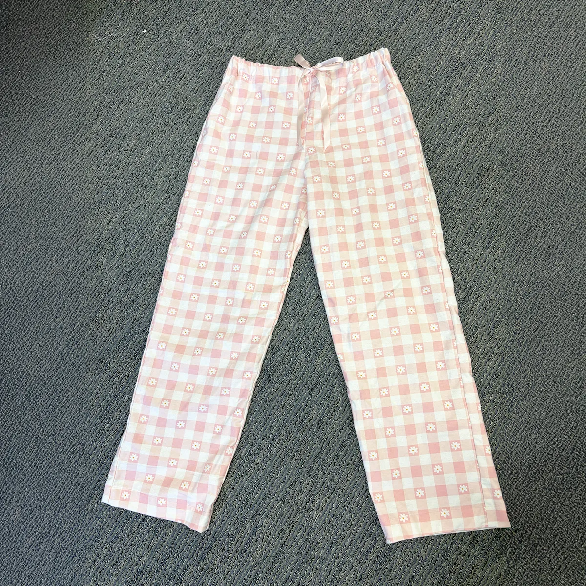 Wrap yourself in comfort and charm with our Daisy Dreams Lounge Pants. Featuring a soft pink-and-white chequered pattern sprinkled with delicate embroidered daisies, these pyjama pants are perfect for cosy nights in or slow Sunday mornings. Each pair is made with breathable cotton and finished with a drawstring waist for the perfect fit.
